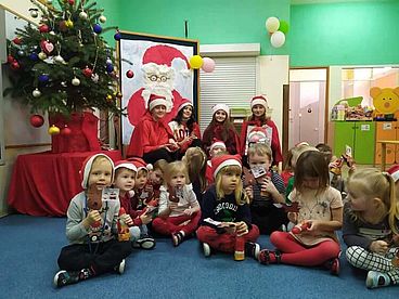 Podekscytowane przedszkolaki z grupy Biedronek wypatrywały go już od rana. Niestety nadmiar obowiązków nie pozwolił mu na osobiste przybicie. Zostawił dla dzieci niespodziankę w postaci filmu, na którym pozdrowił naszą grupę i obiecał odwiedzić nas z prezentami jeszcze przed Bożym Narodzeniem. Tymczasem wysłał do nas swoich pomocników, którzy wręczyli każdemu słodkości oraz złożyli życzenia. Był to magiczny dzień i pozostanie w naszej pamięci na długo.