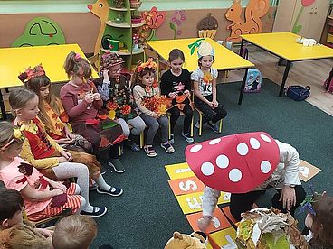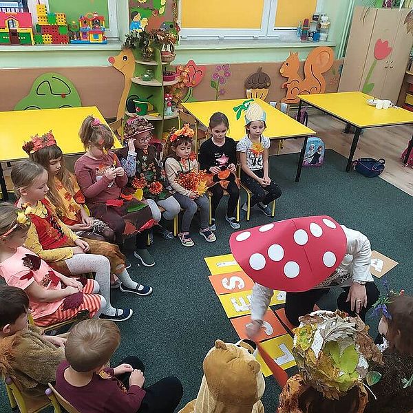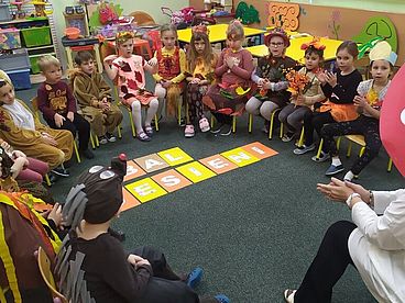 29 listopada grupa „Misie” w pięknych strojach przystąpiły do długo oczekiwanego jesiennego balu. Rozpoczęły zabawę inscenizacją wiersza Jana Brzechwy „Na straganie” w połączeniu z wyjątkową oprawą muzyczną. Śpiewały piosenki i recytowały znane im wiersze zgodne z tematem zorganizowanej imprezy. Było mnóstwo świetnej zabawy – tańce, zagadki, konkursy, gry a także słodka niespodzianka. To był idealny sposób na poprawę jesiennego humoru.