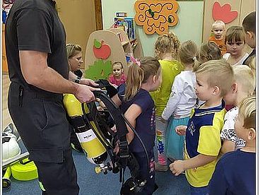 W trakcie spotkania dzieci dowiedziały się, że praca strażaka nie polega tylko na gaszeniu pożarów, ale również na udzielaniu pomocy ludziom podczas powodzi i wypadków samochodowych. Celem spotkania była informacja, jak dbać o bezpieczeństwo własne w domu i na ulicy. Dzieci z bliska miały możliwość podziwiania wyposażenia, jakim dysponują strażacy podczas swojej ciężkiej odpowiedzialnej pracy. Bardzo aktywnie uczestniczyły w spotkaniu